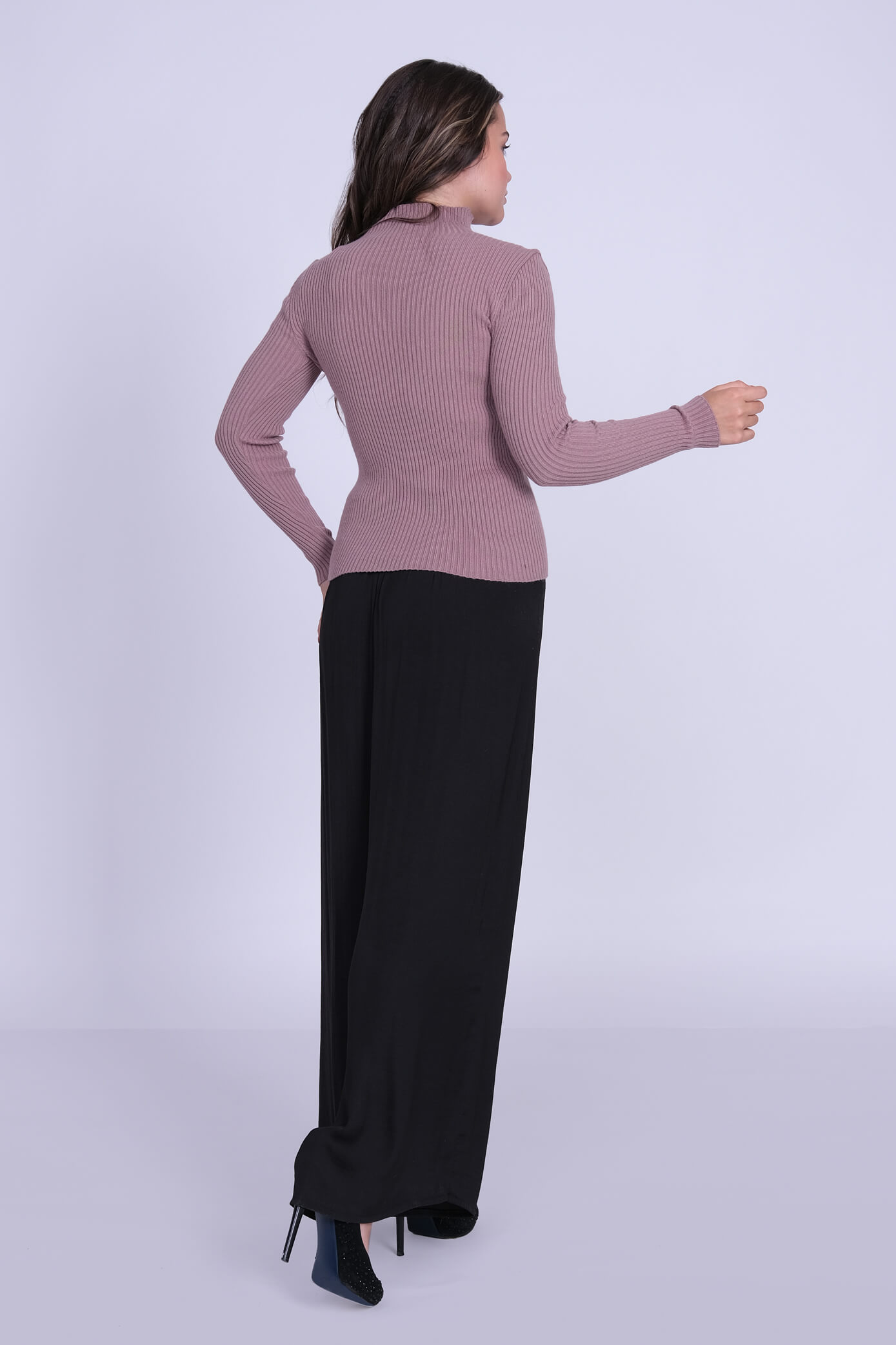 - Водолазка выполнена из смесового материала, который приятно ощущается на коже. Эта модель классическая, с длинным рукавом, высокой горловиной и в длине до середины бедр