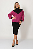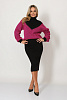 - Женский трикотажный костюм состоит из жакета и юбки. Жакет выполнен жаккардовым переплетением, образующим рисунок-ёлочку. К глубокому V-образному вырезу пришита манишка-стойка, вывязанная "лапшой". Объемные рукава со спущенным плечом, манжеты вывязаны переплетением-резинка. Длина джемпера 63см, юбки-75см.
