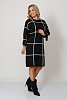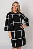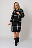- Женское трикотажное платье свободного силуэта. Вырез горловины круглый, рукава втачные длиной 7/8. Платье выполнено жаккардовым переплетением, образуя геометрический рисунок-клетка.