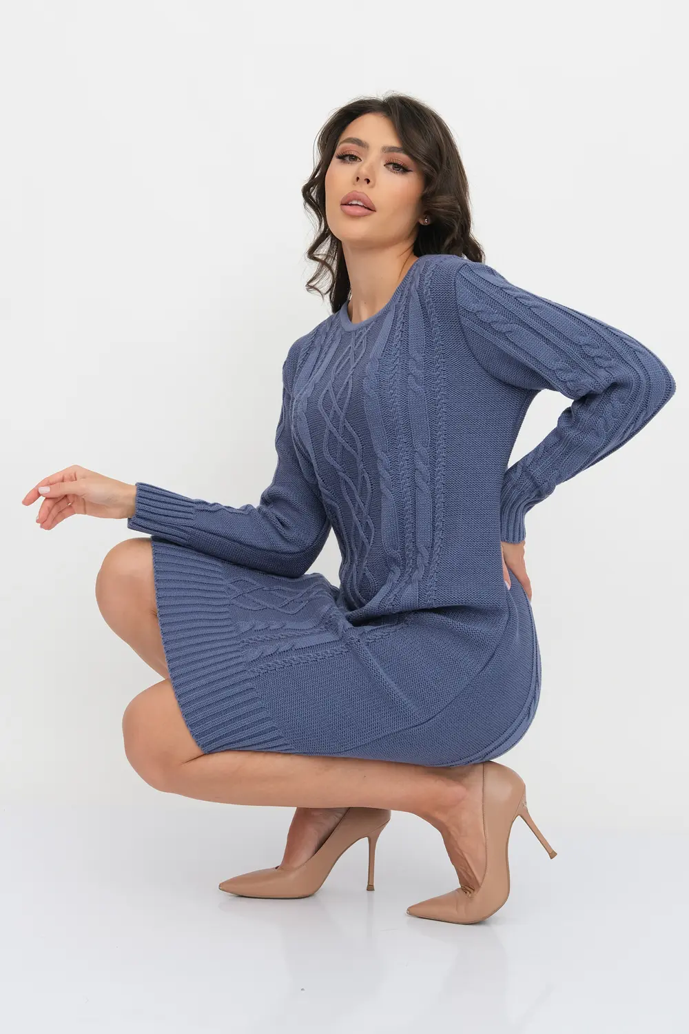 - Вязаное платье женское полуприлегающего силуэта . Рукава втачные длинные. Горловина круглая, обработана бейкой. Платье с фактурным узором косами станет украшением вашего осеннего гардероба. Женское вязаное платье изготовлено из мягкой и приятной к телу турецкой пряжи с содержанием шерсти.и подходит для использования в зимний период.