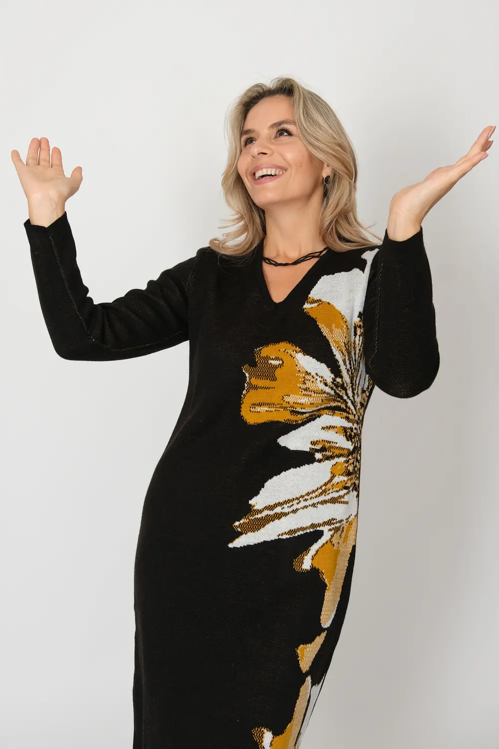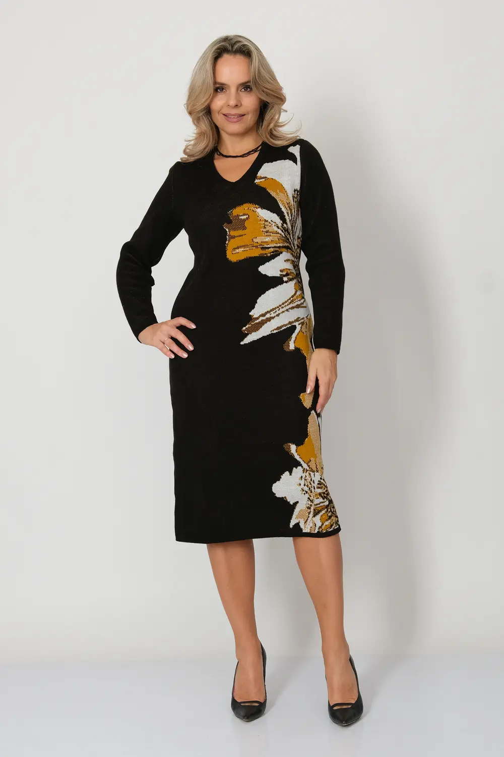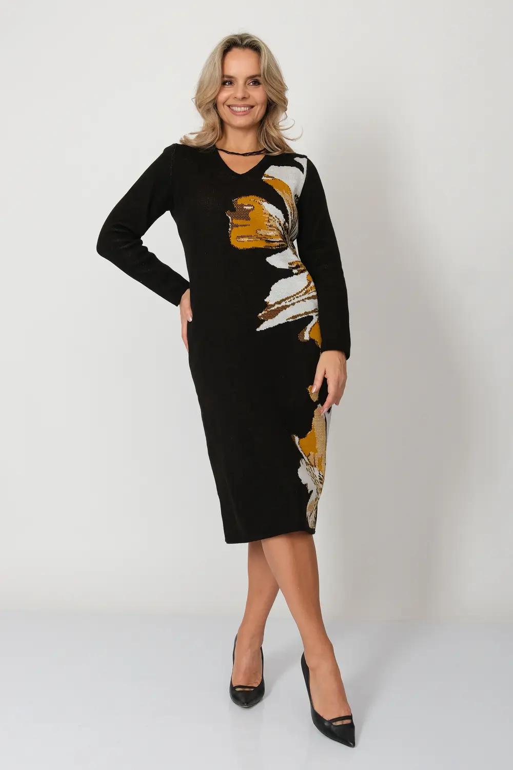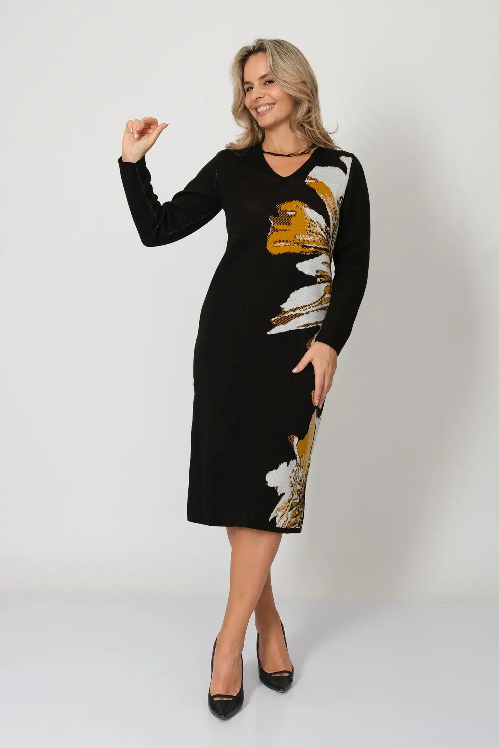 - Вязаное эффектное платье полуприлегающего силуэта. Рукава втачные длинные. Горловина круглая, обработана бейкой. Жаккардовое переплетение. Платье выгодно подчеркнет Вашу фигуру и согреет Вас прохладной погодой.
