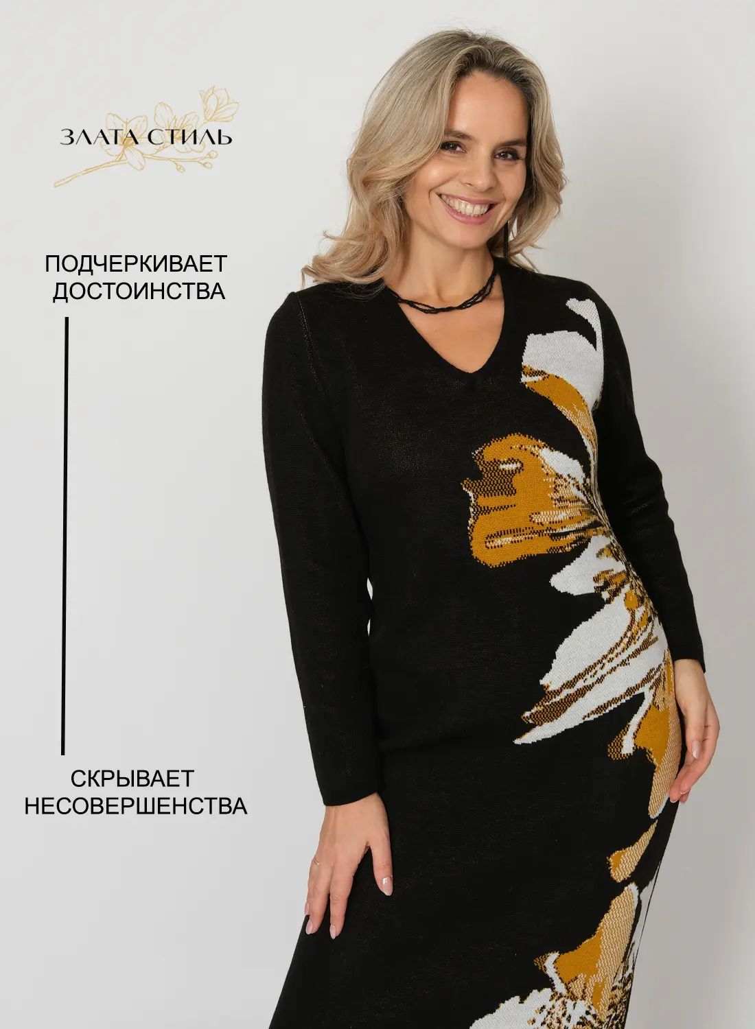- Вязаное эффектное платье полуприлегающего силуэта. Рукава втачные длинные. Горловина V-образная, обработана бейкой. Жаккардовое переплетение. Платье выгодно подчеркнет Вашу фигуру и согреет Вас прохладной погодой.