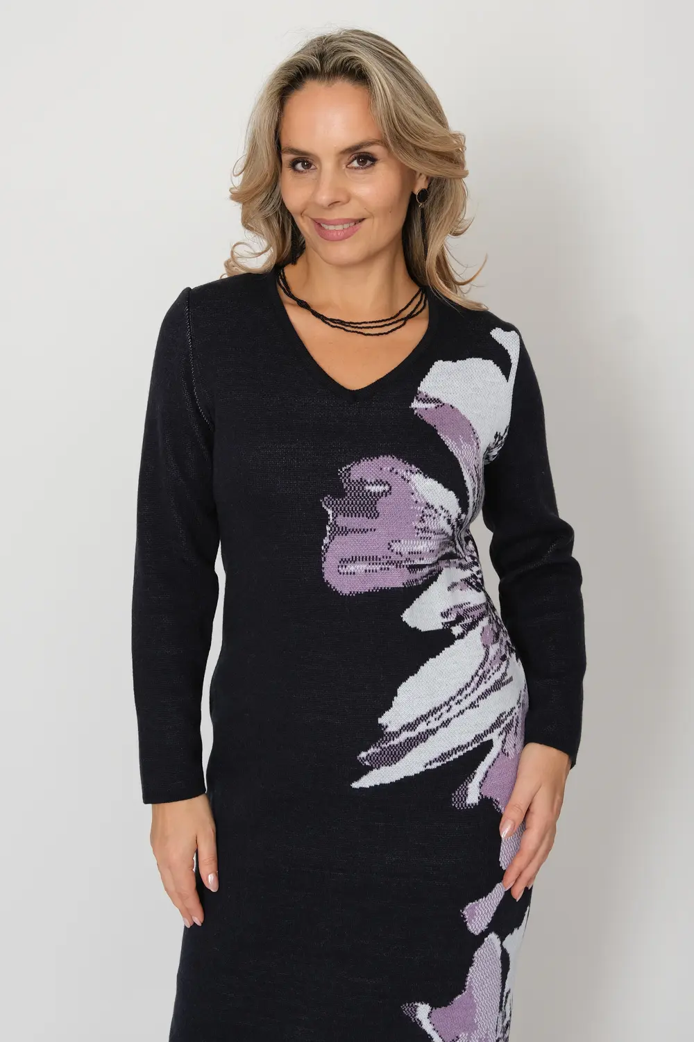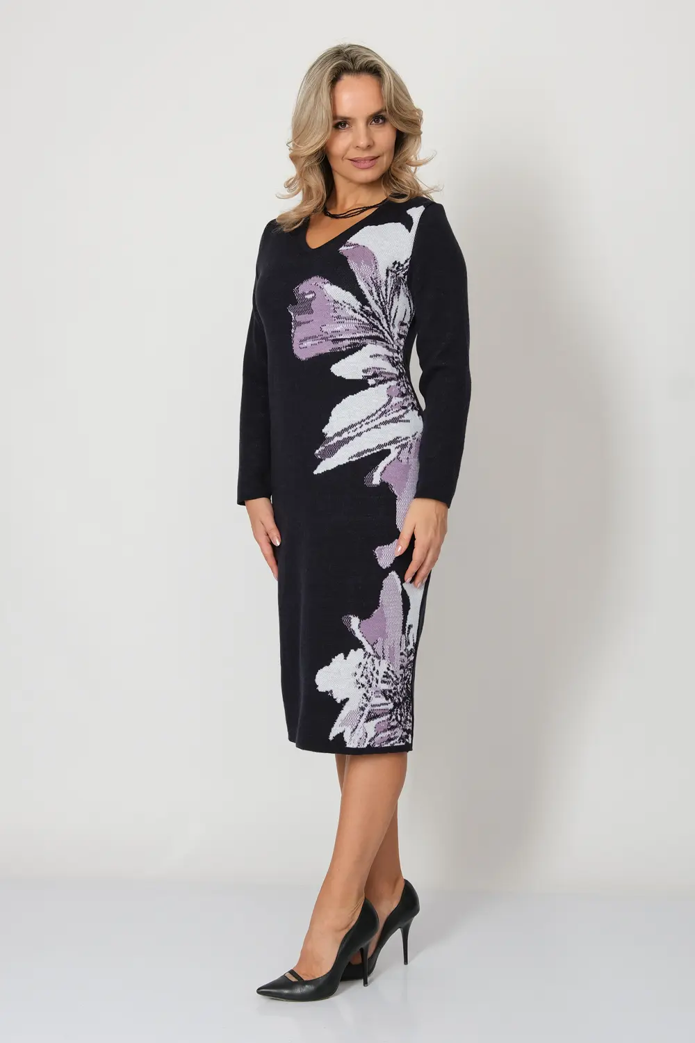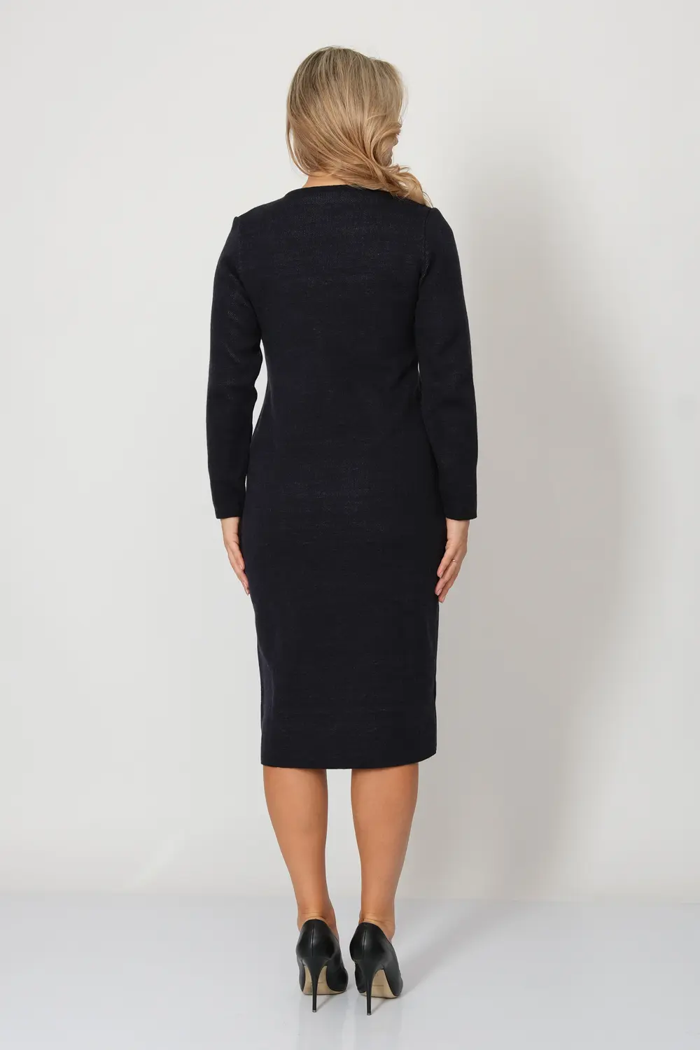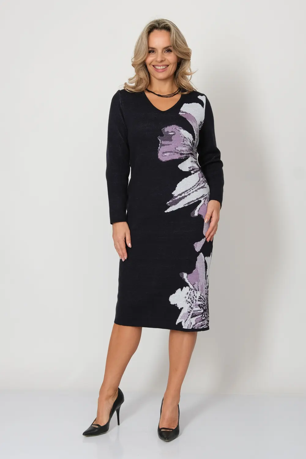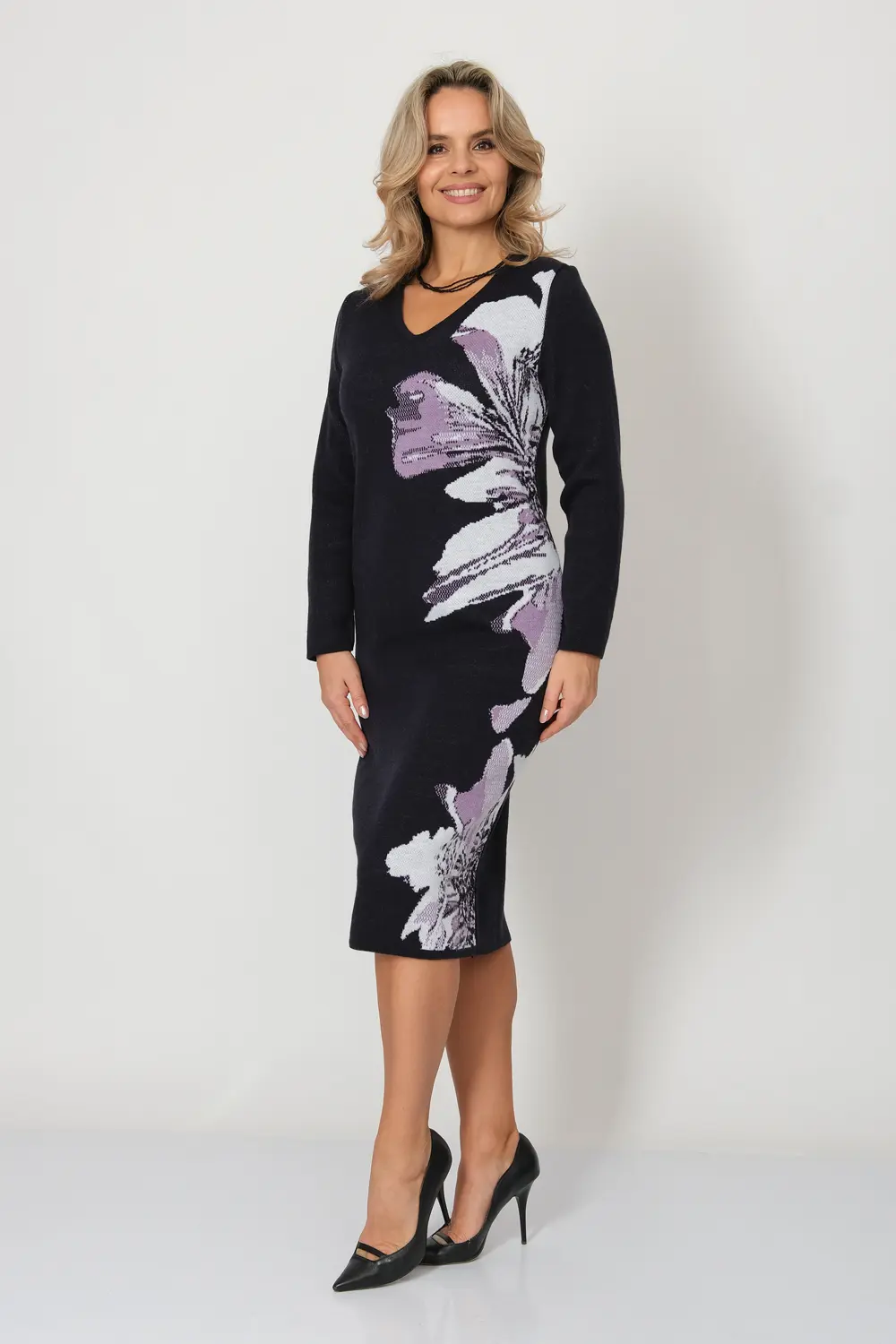 - Вязаное эффектное платье полуприлегающего силуэта. Рукава втачные длинные. Горловина круглая, обработана бейкой. Жаккардовое переплетение. Платье выгодно подчеркнет Вашу фигуру и согреет Вас прохладной погодой.