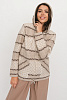 - Вязанный женский жакет на молнии с капюшоном свободного силуэта с двумя накладными карманами. Рукава втачные длинные. Жакет выполнен переплетением, сочетающим чередование цветных и рельфных полос и . В капюшон и низ изделия проложен трикотажный шнурок для регулировки ширины.