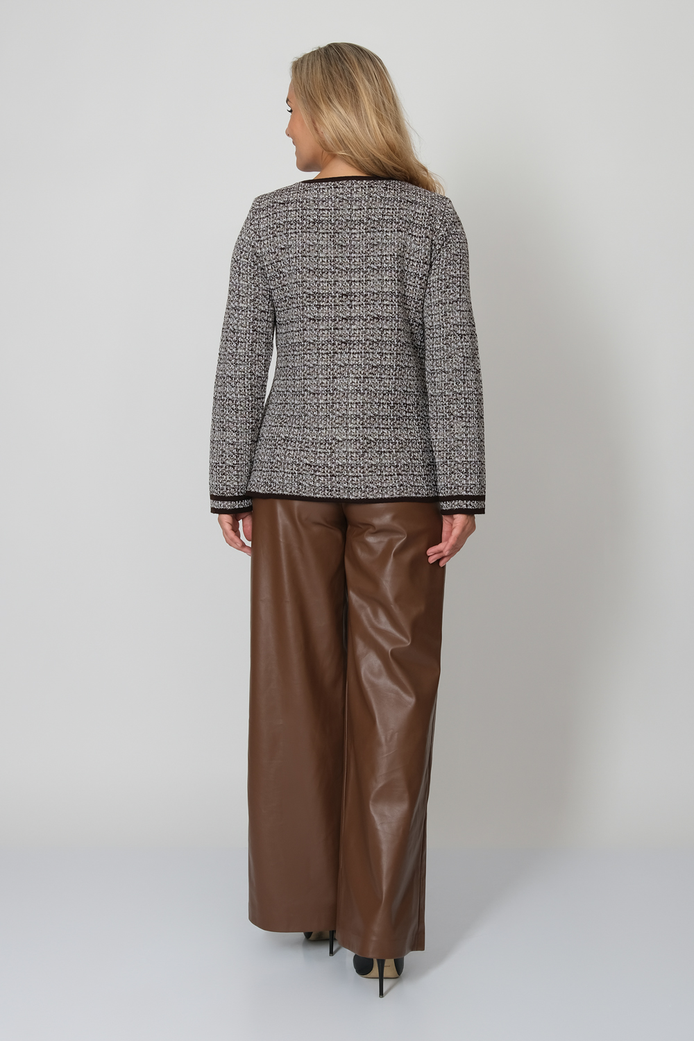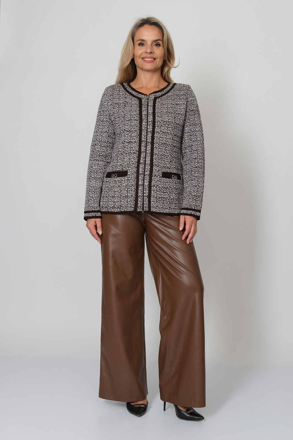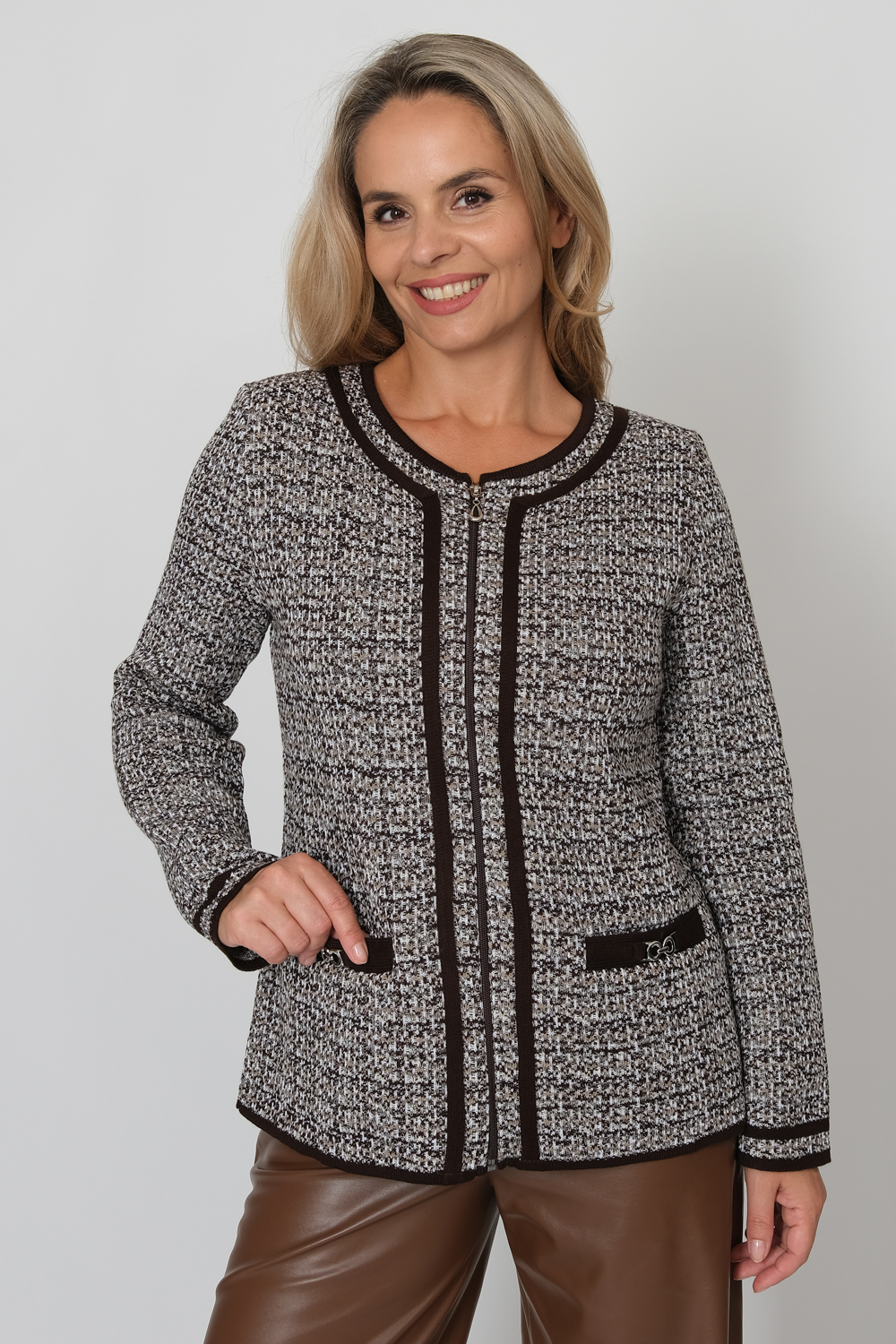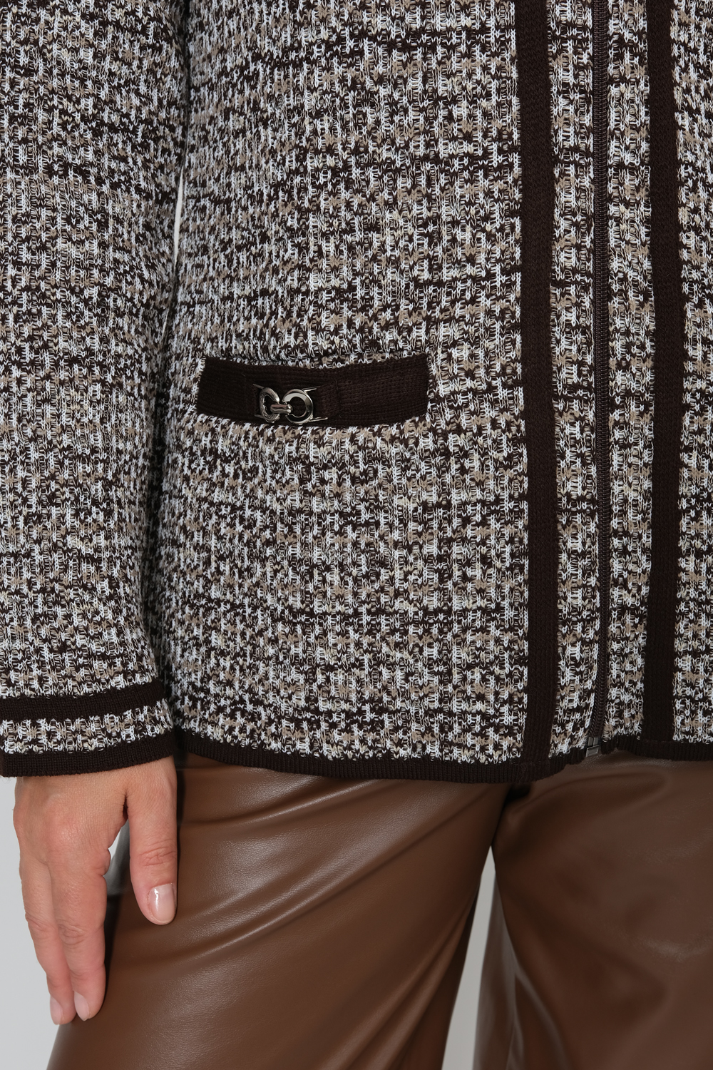 - Женский вязаный жакет в классическом стиле полуприлегающего силуэта, с круглой горловиной, на молнии. Классический пиджак производства Беларусь. Трикотажный пиджак выполнен из высококачественной пряжи с составом 30% хлопок 70% ПАН. Классическая кофта имеет круглую горловину без воротника и два прорезных кармана с листочкой и декоративным украшением. Длина изделия 60 см, длина рукава 61 см. Деловой жакет застегиваются на молнию по всей длине изделия. Вязаная кофта с контрастной отделкой горловины, рукавов и планки под молнию. Строгий офисный жакет полуприлегающего силуэта подойдет для любого типа фигуры. Хлопковый пиджак подарит комфорт и уют в носке, как помещении в холодное время года, так и в качестве верхней одежды прохладным летом. Классический жакет прекрасно поддержит стильный, строгий офисный стиль в комплекте с юбкой или брюками, а также отлично подойдет для выхода на различные мероприятия и прогулки с друзьями в комплекте с джинсами.