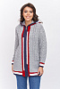- Жакет женский вязаный свободного силуэта, с капюшоном. Спущеное плечо, рукав длинный. По низу рукава и изделия эластичная резинка. Жакет выполнен вязкой с объемными косами. Жакет декорирован контрастными полосами на капюшоне, манжетах и вдоль полочек. Оптимальный состав - пан-70%, шерсть - 30% - позволяет чувствовать себя комфортно в помещении. Жакет, благодаря свободному крою, подойдет для любого типа фигуры.
