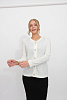 - Нарядный женский жакет из трикотажного полотна полуприлегающего силуэта с круглой горловиной, на пуговицах. Рукава втачные длинные. Жакет выполнен структурным переплетением. Эффектная металлические пуговицы в отделке придают жакету нарядный вид..