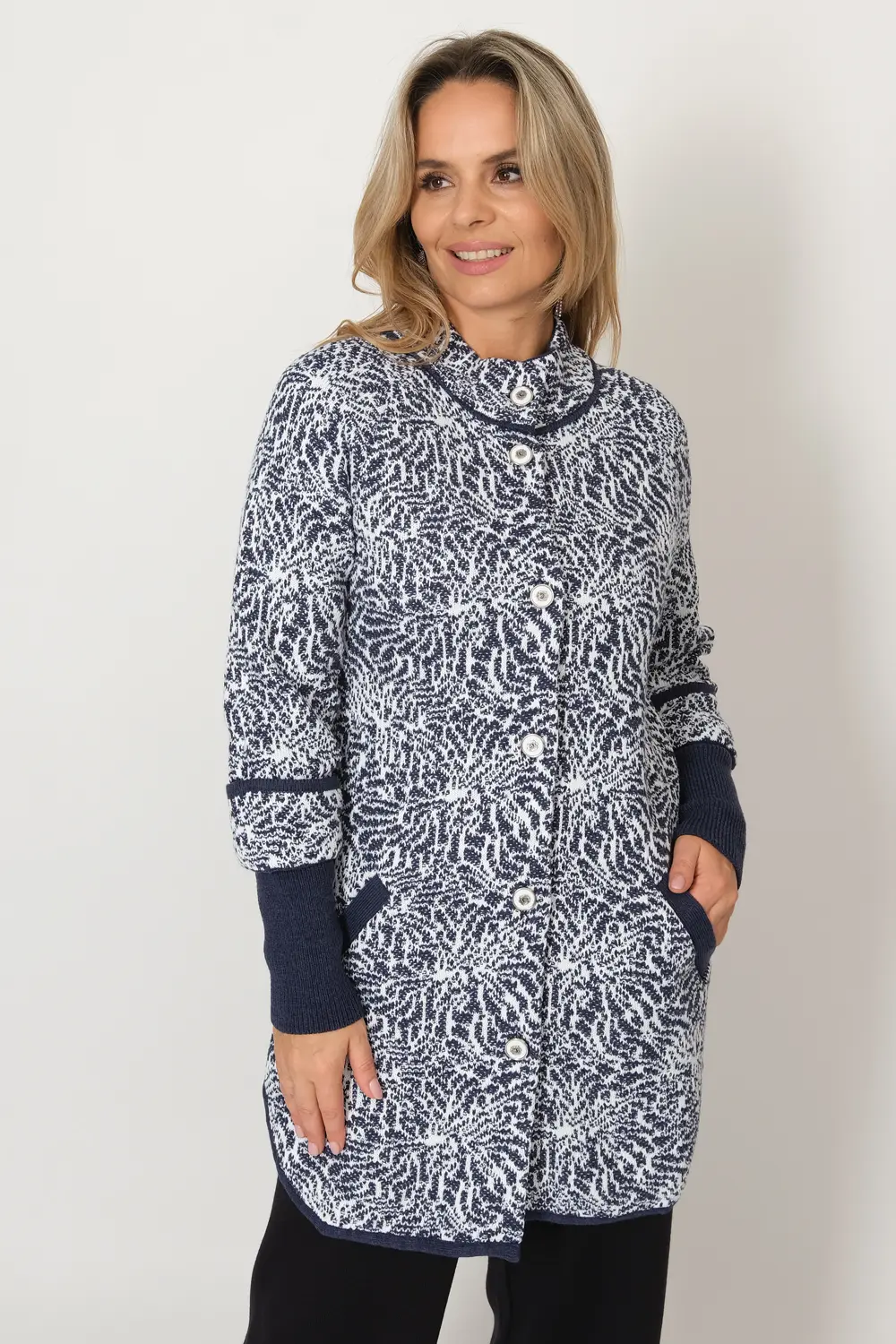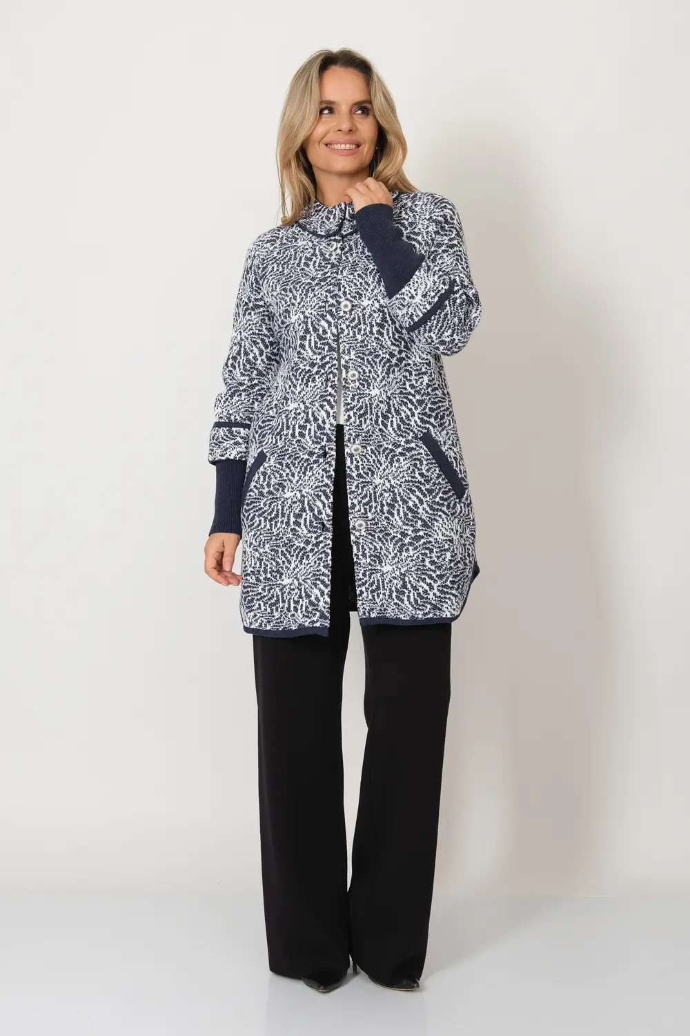 - Элегантный вязаный жакет - несомненный хит сезона. Изумительно красивое полотно структурной вязки с мерцающей подсветкой по изнанке. Застежка на пуговицы, карманы в листочку, функциональные. Рукава длинные на манжете. Манжет фиксированный. Кардиган выглядит женственно и элегантно. Он отлично сочетается с юбкой-карандашом и брюками.