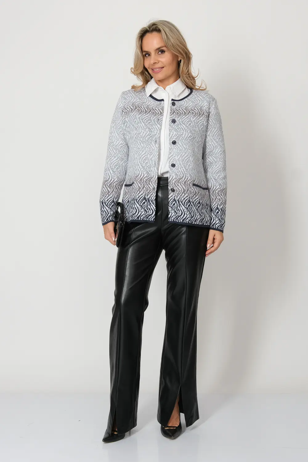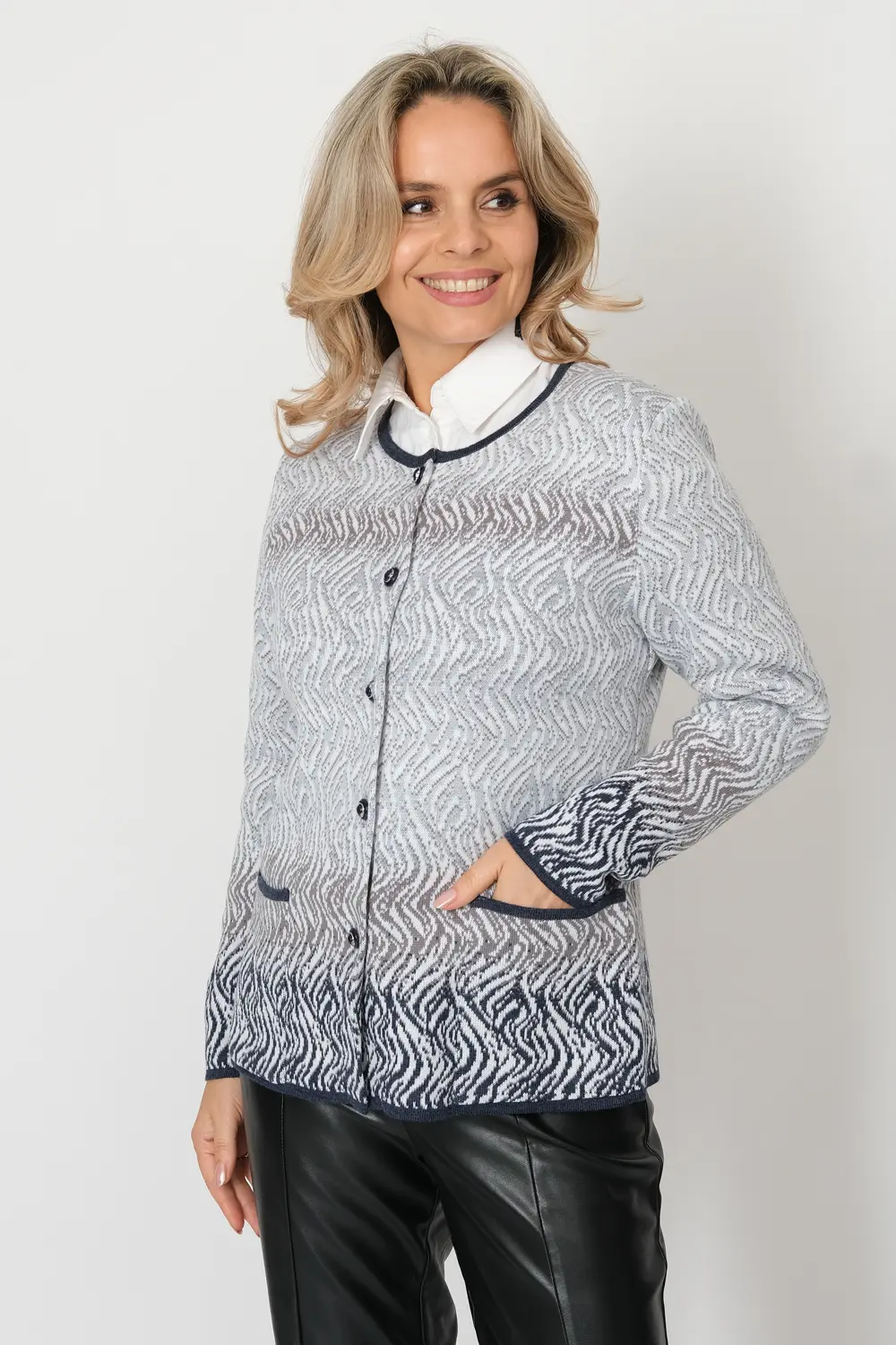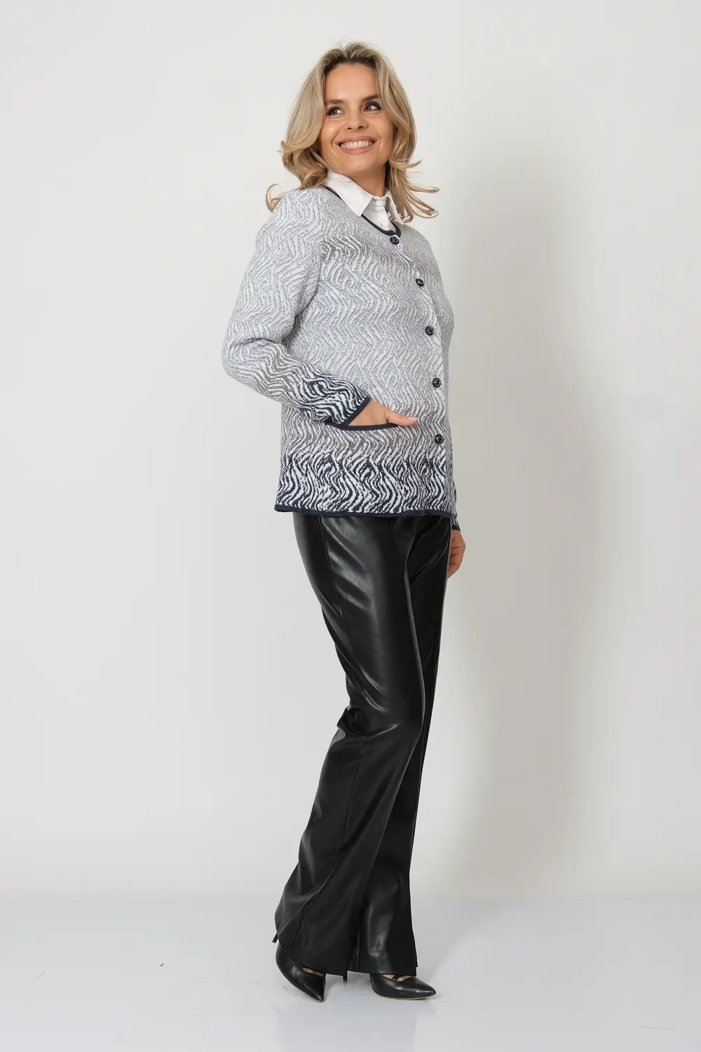 на пуговицы, два накладных кармана. Жакет выполнен жаккардовым переплетением. По низу изделия и рукавов, горловине и входу в карман проходит отделка контрастного цвета. - Новизна:
