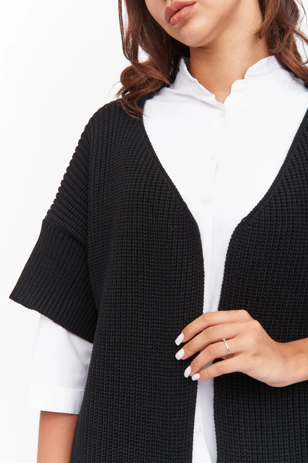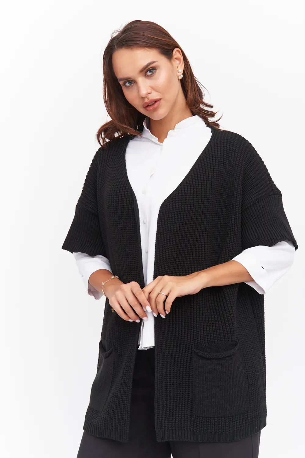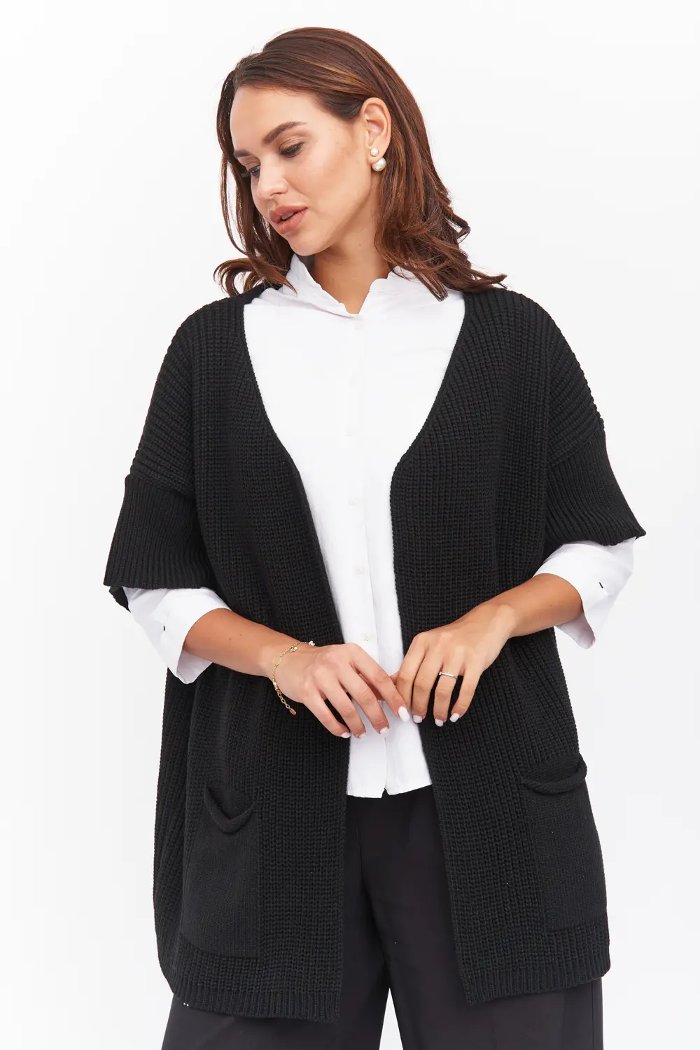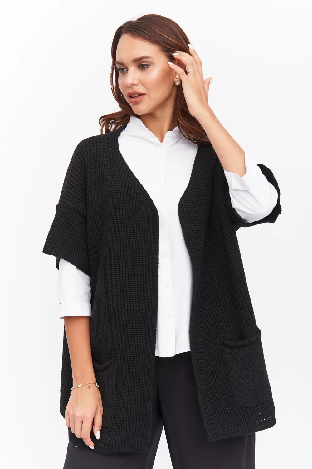 - Жилет свободного прямого силуэта со спущенным плечом и V-образной горловиной. Жилет выполнен жемчужным переплетением. Два функциональных накладных кармана. Благодаря фасону оверсайз стильно смотрится на любой фигуре - подчёркивает достоинства и скрывает недостатки, дополнит любой образ.